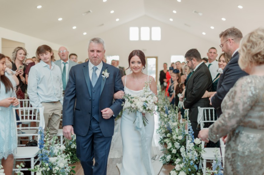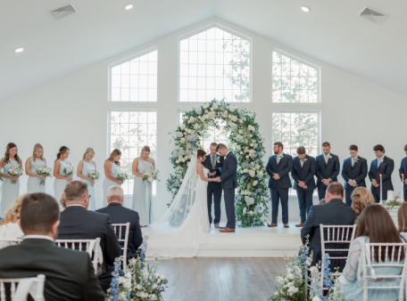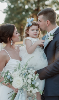 On Saturday, October 8th, 2022, Hannah and Justin Messer were married at the Grandeur House in Little Rock, Arkansas. Surrounded by their closest friends and family, Hannah and Justin were showered with endless love. They were able to celebrate their most perfect day with their three-year-old daughter, Landyn, as their flower girl. Hannah walked down the ethereal white and blue flower-covered aisle to say “I do” to the man she’s prayed for her whole life.