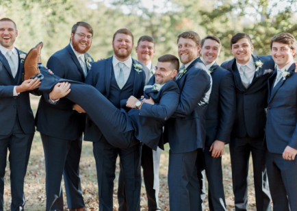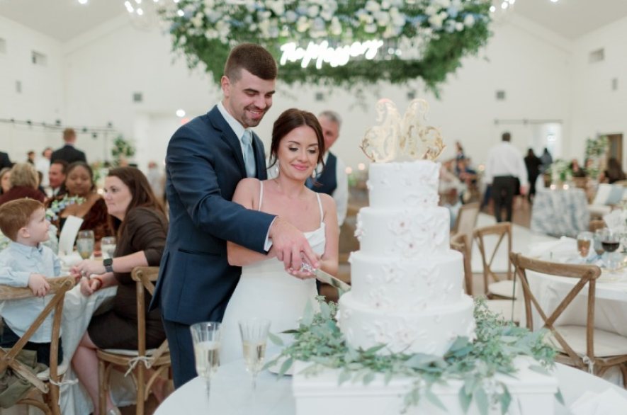After the ceremony, the guests enjoyed delicious food from Vibrant Occasions Catering and the stunning three-tier honeybun cake by Social Bites Connection. Guests danced the night away on Hannah and Justin’s dance floor decorated with their family crest. At 10 p.m., cheeseburgers from David’s Burgers, a local Arkansas restaurant, were served. A cotton candy truck was available with custom flavors, making for endless amounts of dessert fun. After the reception, the newlyweds rode away in a gorgeous cream-colored vintage car—a wonderful way to end their best day.